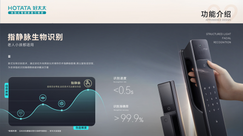 除了人脸识别解锁外,它的指静脉解锁也是很值得一提的。对于一些天生指纹浅薄或者随着年龄增长、物理磨损导致指纹逐渐变化的用户而言,一般的指纹解锁方式显得非常不便。为解决这一问题,这款智能锁在全新升级中引入了安全系数极高的指静脉识别技术。用户只需将手指轻轻搭在指静脉的解锁区域,通过近红外光的照射,与事先存储的手指静脉图像进行比对,就能在短短的0.5秒内完成解锁。这项指静脉识别技术的应用不仅将开锁效率提升了一倍,而且无需依赖指纹,仍然能够迅速而安全地进行身份识别。此外,指静脉识别技术无法被复制和窃取,为用户的家居安全提供了更为可靠的保障。