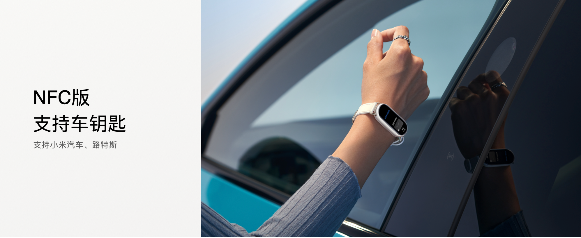 小米手环9 搭载 HyperOS,配合小米手机可体验手表级别的焦点信息同时,打车外卖信息抬腕可见,不错过每一个瞬间。此外,小米手环9 NFC 版和陶瓷版支持解锁小米 SU7 和路特斯汽车 ,让您控车更随心。小米手环9 首次搭载手表级线性马达,独创20种震动模式覆盖25+使用场景,让您在趣味游戏、焦点通知、闹钟等场景可享受细腻震感体验。