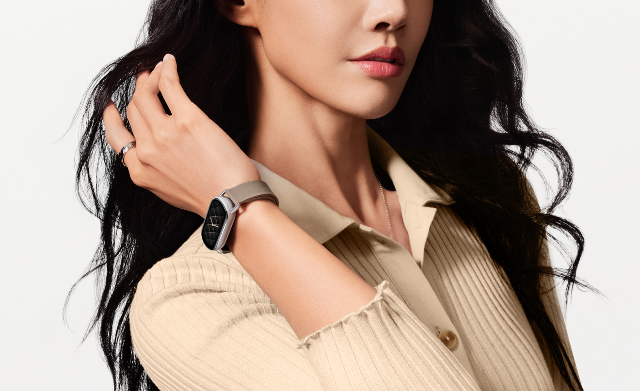 小米手环9 银色配卡其棕磁吸腕带 精致优雅的腕上新质感、采用第四代永磁技术,采用亲肤柔软的科纳皮材质包裹柔性磁铁,带来腕围无级调节,与银色机身恰切和融,挥手间透显独特品味。银色配链扣金属腕带 先锋时尚,自由态度、清雅的银色与链扣金属的先锋感相得益彰,是搭配潮流时尚风格的好手,朋友聚会或是日常出游,“一举”让你成为人群中的焦点。