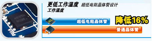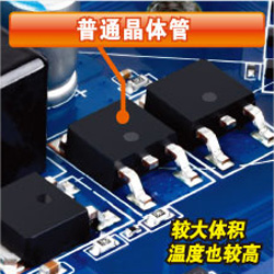 属于技嘉“2011效能行家版”的技嘉GA-H67MA-D2H-B3主板采用先进的SO8封装超低内阻式晶体管,这种晶体管经过特别设计,能缩短电源切换时间,更快的完成收放电动作,并降低电源传输的电阻,使用这种特别昂贵的晶体管组建,是因为超低电阻式晶体管拥有更低的电源耗损,能够更快速的切换完成工作,相对的也能降低热量的产生,而且更省电,从而加强在提高主板能效比的同时,延长主板的寿命。此外,技嘉GA-H67MA-D2H-B3主板的晶体管设计全部采用“1上2下”设计,以针对CPU超频提供最大的电力支持。