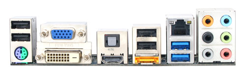 I/O接口方面,技嘉GA-H67MA-D2H-B3提供一个PS/2键盘/鼠标接口,2个USB3.0接口和4个USB2.0接口,RJ45千兆网络、eSATA 3Gb/s、S/PDIF光纤输出、HDMI、D-Sub和DVI-D接口各1个, 以及1组7.1声道音频接口,完全能满足网吧用户的应用需求。